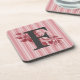 This is a set of hard plastic coasters featuring cabbage roses on a striped ground. In the center is a large monogram. To change the letter, press "Edit Design", tap the letter, then "Edit text". You can also change the letter size and move it up or down as desired. Use the green 'circle' in the center as a guide. Check out my other items in this series - just press my shop name.