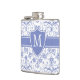 Monogram on Stylish Blue Periwinkle Pattern Hip Flask