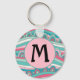 This keychain features a modern wavy background with a black monogram on a pink disc. To change the letter, press "Edit Design", then "Edit text". Tap my shop name to see other items with this design.