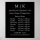 Modern Minimalist Business Hours Poster Sign. Black & White or choose your custom colors. Perfect for retail companies, small business shops, salons, spas, bakeries, cafes, restaurants, bars and more. Easy to personalize with your monogram initials, business name and information, photos, slogan or even add your logo or personal brand design.