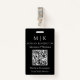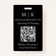 Modern Minimalist Name Badge. Black & White or choose your custom colors. Add your website or social media web address to the QR Scan Code. Perfect for small business, company brands, self employed, beauty salons, spas, caterers, bakeries, coffee cafes, restaurants and more. Easy to personalize with your monogram initials, business name and information, job title, slogan, employee photo or even add your logo or personal brand design.