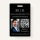 Modern Minimalist Name Badge with Photo. Black & White or choose your custom colors. Add your website or social media web address to the QR Scan Code. Perfect for small business, company brands, self employed, beauty salons, spas, caterers, bakeries, coffee cafes, restaurants and more. Easy to personalize with your monogram initials, business name and information, job title, slogan, employee photo or even add your logo or personal brand design.