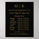 Modern Minimalist Gold Foil Print Poster. Black Background or choose your custom color. Perfect for small business, company brands, self employed, mall kiosks, retail stores, trades shows & events, beauty salons, spas, caterers, bakeries, coffee cafes, restaurants, bars and more. Easy to personalize with your monogram initials, business name and information, photos, slogan or even add your logo or personal brand design.