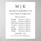 Modern Minimalist Business Hours Poster Sign. Black & White or choose your custom colors. Perfect for retail companies, small business shops, salons, spas, bakeries, cafes, restaurants, bars and more. Easy to personalize with your monogram initials, business name and information, photos, slogan or even add your logo or personal brand design.