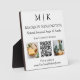 Modern Minimalist Business Plaque Tabletop Sign with 2 Photos. Black & White or choose your custom colors. Add your website or social media web address to the QR Scan Code. Allow customers to use the scan to access information on your items such as products or menu items. Perfect for retail companies, small business shops, mall kiosks, trade show and event booths, hospitality, salons, spas, bakeries, cafes, restaurants, bars and more. Easy to personalize with your monogram initials, business name and information, photos, slogan or even add your logo or personal brand design.