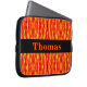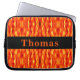 A beautiful laptop sleeve featuring a bright abstract pattern design of orange flames. This pattern was inspired by the element of fire, which symbolizes warmth, power and passion. Add a name in the provided template field to create the perfect personalized gift. For more customization options (i.e. changing the font or text size), click on the customize button. The font displayed on the laptop sleeve is Century Bold.