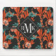 Monogram | Orange Abstract Floral Pattern Mouse Pad