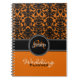 Monogram Orange Black White Damask Wedding Planner Notebook