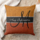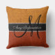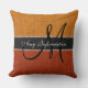 Monogram Orange Burlap Rustic Jute Throw Pillow