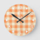 Monogram Orange Cream Plaid Farmhouse Round Clock