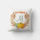 Monogram Orange Plaid Tartan Fall Pumpkin Floral Throw Pillow