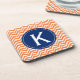Monogrammed orange chevron pattern with royal blue accent cork coaster. Add your monogram.