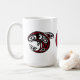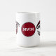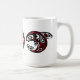 Add your monogram to this native Haida killer whale design coffee mug. Deep burgundy, white and black shapes circle the cup. Your initials are centered in the middle of the design.