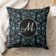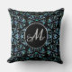Monogram Ornate Blue Pearl Floral Throw Pillow