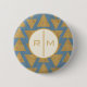 Monogram | Outdoor Geo Step | Gold & Blue Pattern Pinback Button