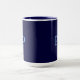 This is a navy blue combo mug. The mug has a P Monogram on both sides. The combo style of mug has a vividly glazed interior and handle. This monogram combo mug has a navy blue interior and handle. You can change the letter of the monogram by clicking the Personalize button. Funny, unique, pretty, or personal, it's your choice for the perfect coffee mug. The outside of the mug features a bright white base for your photo, logo, pattern, or saying, while the rim & handle are vividly glazed in rich color. Match or complement the color of your existing dinnerware set, or gift your friend a mug in his or her favorite color. The mugs are microwave and dishwasher safe. The combo mugs are made with strong ceramic construction. These combo mugs meet the FDA requirements for food and beverage safety. The mugs are printed on demand in Reno, NV.