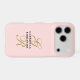 Elegant refined premium look chic iPhone case, personalizable customizable with monogram, initial letters and name. Classy feminine, girly, pretty pastel blush pink background, elegant gold calligraphy script handwritten initial letters, and stylish black typography for the name. Beautiful simple monochromatic, minimalist minimal design, and useful, for protecting your cellphone or as a thoughtful custom electronic tech accessory gift for her, under 30 dollars For personal use or as a professional business phone case. Suitable as a birthday, Mother’s Day, Christmas, graduation, even retirement present. Or for your company employees for example.