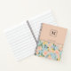 This monogrammed flower pattern notebook is a beautiful addition to any desk or workspace. The cover features a framed monogram and name with a pretty floral and leaf motif in shades of pastel pink, light blue and green for a feminine touch. The back is covered in the same shade of pink. Perfect for meeting notes or a place to write down your to-do list. The soft pastel colors and floral design make this notebook a charming and stylish choice.