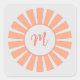 Monogram Peach Gray Sun rays Initial "M" Square Sticker