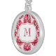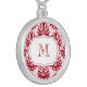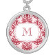 Monogram Pendant Initials Necklace Red Damask. Personalized Christmas Image Pendant Modern Cute Necklace with Red damask pattern and elegant label.