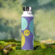 Personalized water bottle with initials and the owner's name, designed with circles in a fresh color palette including aqua, yellow-green and purple. Easy to customize with its templates! Matching articles in my shop.