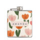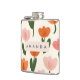 Monogram Personalized Cute Spring Tulip Pattern Flask