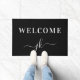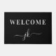 Elegant custom doormat features "Welcome" in white script typography on classic black background with your family's name initial monogram to provide a warm welcome to your guests. Easy to customize all text. Enjoy!