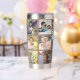 Add 15 family, kids, pets or best friends photos and create your own trendy collage grid light mocha brown and white tumbler with your personal or family monogram name initial inside a white heart. +++++++++++ Easy to personalize with your custom square images and letter. It can be a nice thoughtful keepsake gift for a family member, friend, or coworker on a birthday, anniversary, Christmas, or any other occasion.