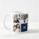 Customize this classic white mug with eight of your favorite Instagram or square photos in a gridded collage layout. Add treasured photos of family, children or grandchildren to create a sweet keepsake and a one of a kind gift for dads or grandfathers. Your single initial monogram appears on both sides in white on navy blue for a personalized accent.