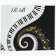 Unusual monogrammed musical design featuring swirling piano keys with gold musical notes flowing from the centre of the keys. This design would make the perfect gift for the piano lover and is available on a collection of gifts and paper products. Just change the letters to create a unique monogrammed musical notes gift. sgb01
