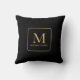 Custom Replace Your Name Text Here Elegant Modern Simple Design Template Black & Gold Monogram / Monogrammed Square Pillow.