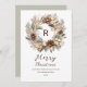 Monogram Pinecone Winter Wreath Merry Christmas Holiday Card