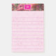 This post-it note features a charming design of pink houses nestled in a whimsical fantasy forest. At the center, there is a pink square that displays initials or a monogram, set against a matching pink backdrop adorned with stylish slashes and lines. This practical stationery accessory is ideal for women in an office environment and is perfect for college students, as well as middle and high schoolers. It's an excellent choice for anyone who loves pink-themed items.