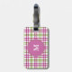 Monogram Pink and Green Tartan Pattern Luggage Tag