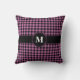 Monogram Pink Black Gingham Plaid Checked Pattern Throw Pillow