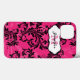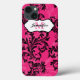 Monogrammed modern hot pink and black leafy ornate floral scrolls and swirls pattern Case-Mate iPad 2, 3 or 4 case customized with your name, initials, monogram, logo, or other text.