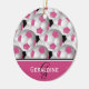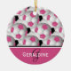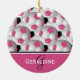 Monogram Pink Black Soccer Ball Pattern Ceramic Ornament