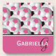 An eye-catching and stylish football soccer ball design featuring a pattern of black and white and pink and white soccer balls with accents in coordinating pink, black and white with your monogram initials and name. Ideal for the soccer girl or soccer Mom.
