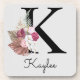 Monogram Pink Boho Girly Floral Initial K Beverage Coaster