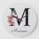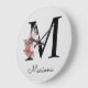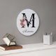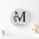 Monogram Pink Boho Girly Floral Initial M Large Clock