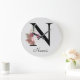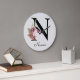Monogram Pink Boho Girly Floral Initial N Large Clock