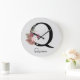 Monogram Pink Boho Girly Floral Initial Q Large Clock