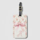 Monogram Pink Bow Coquette Luggage Tag with pretty scripted monogram letter and large pink bow and vintage roses wallpaper pattern.