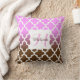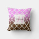 Monogram Pink & Brown Blend Quatrefoil Pattern Throw Pillow
