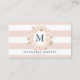 This elegant and modern business card features a monogram with a cherry blossom wreath on a white background with pink stripes. Perfect for event planners, boutiques, interior designers, hair stylists, makeup artists, or any business professionals. Personalize it for your needs. You can find matching products at my store.