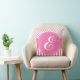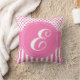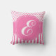 Pretty pink and white colors make this personalizable girl's pillow a beautiful addition to her custom bedroom or a child's playroom. Add a monogram initial when you order. Pink polka dots and stripes background.