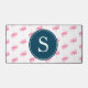 Brighten your workspace with this customizable deskmat, featuring a whimsical pattern of watercolor pink flamingos and your choice of a cute monogram or business logo in white over a navy blue background. Both stylish and practical, it’s the perfect addition to your desk decor at home, school, or the office.