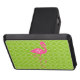 A gift featuring an illustration of a pink flamingo silhouette over a lime green quatrefoil background. Personalize with your name inside circle on flamingo's body.