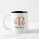Monogram Pink Floral Two-Tone Coffee Mug