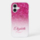Monogram Pink Glitter Ombre First Name Custom iPhone Case
